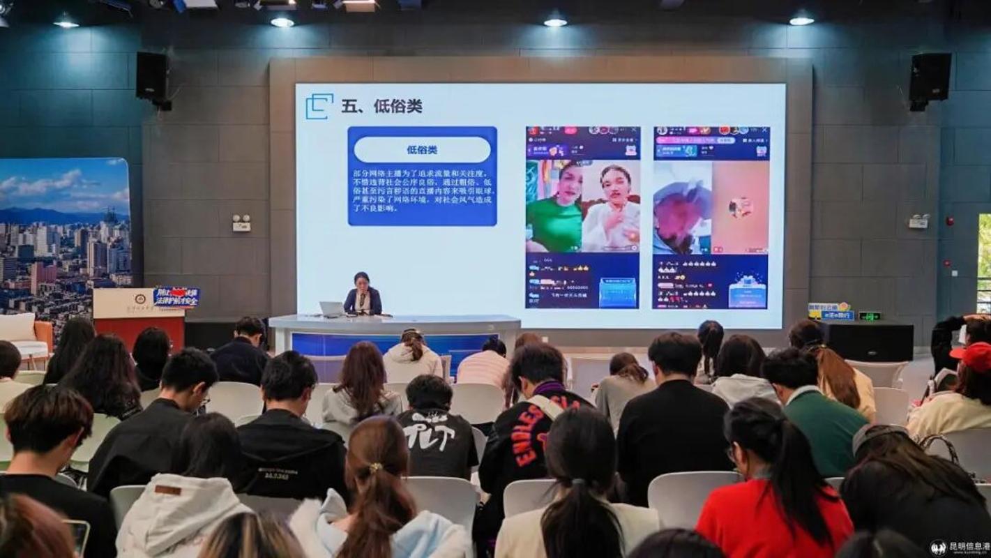 云南省互联网违法和不良信息举报中心网络空间安全工程师张倩,则结合“作品传播者”身份,通过视频演示、平台操作展示,讲解如何辨别网络不良信息、规范作品传播流程。她特别提到,创作普法作品在网络发布时,需注意“信息来源合法性”“受众导向正确性”,并现场指导如何通过官方渠道举报传播中的不良内容,帮助学生既做好“普法创作者”,也当好“合规传播者”。