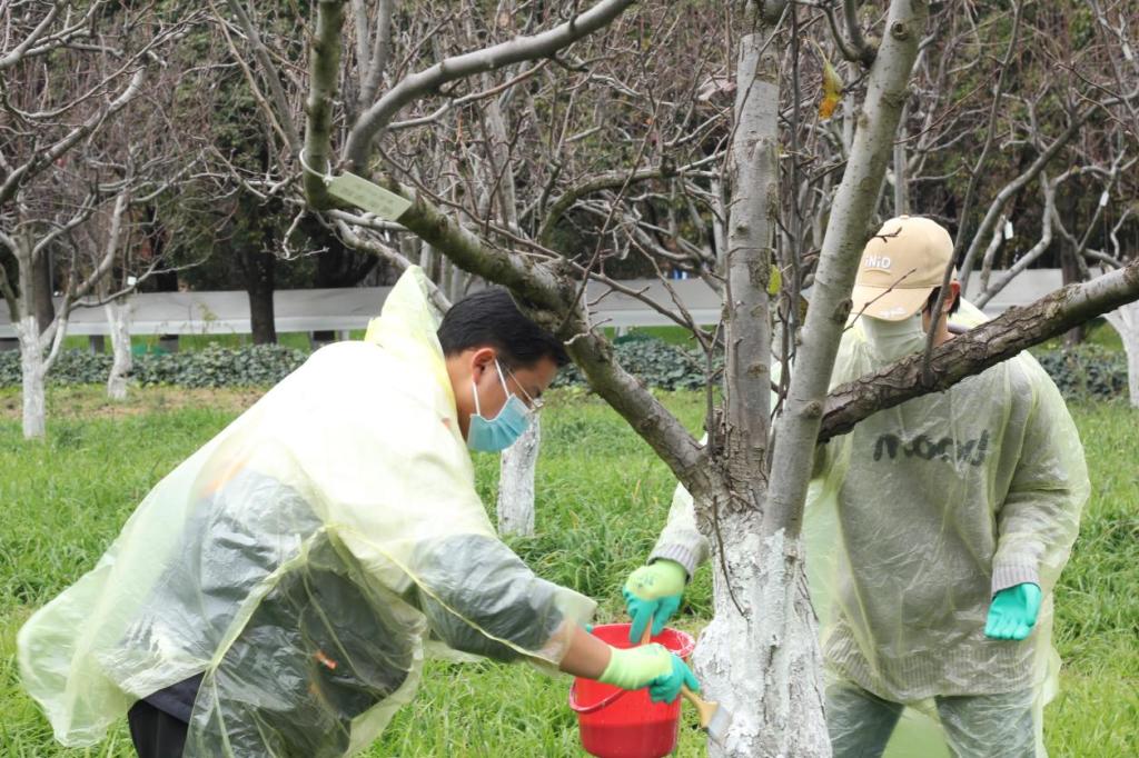 活动当天,阳光明媚,微风拂面。大学生们热情高涨,积极参与到各项劳动中去。他们有的拿起扫帚清扫校园道路,有的整理绿化带,还有的在花坛边细心地为梨树涂白。活动现场气氛热烈,欢声笑语不断。